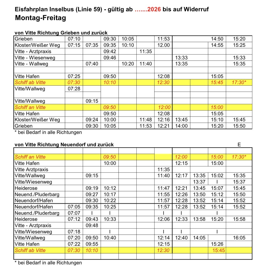 Achtung ab dem 10.01.2026 gilt ausschließlich der Busverkehr zum Eisfahrplan!