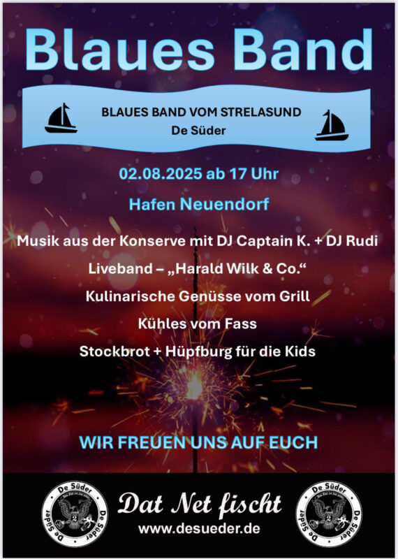 De Süder lädt euch herzlich ein zum legendären Fest rund ums Blaue Band vom Strelasund – maritim, musikalisch, mitreißend!