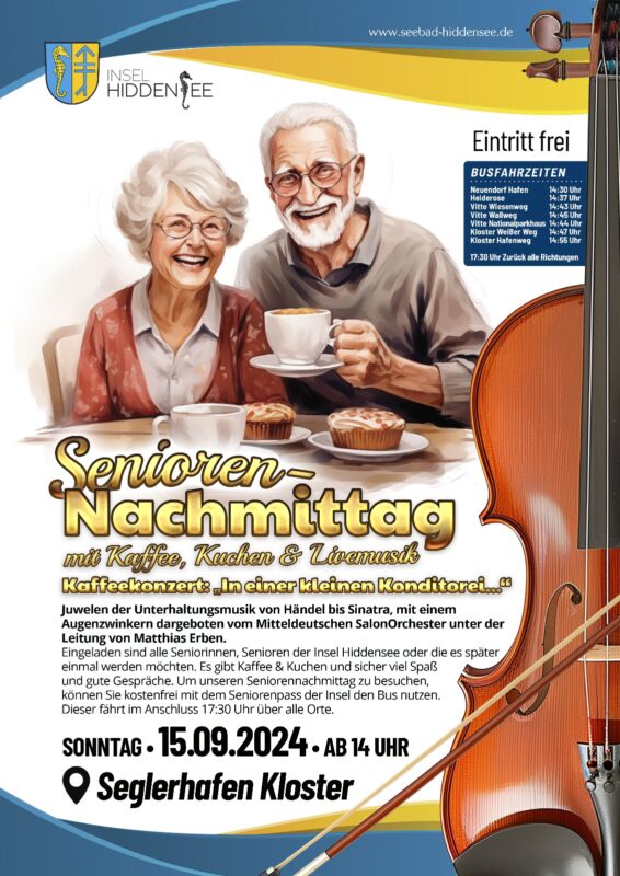 Wir laden zum Hiddenseer Seniorennachmittag mit Kaffee, Kuchen ein.